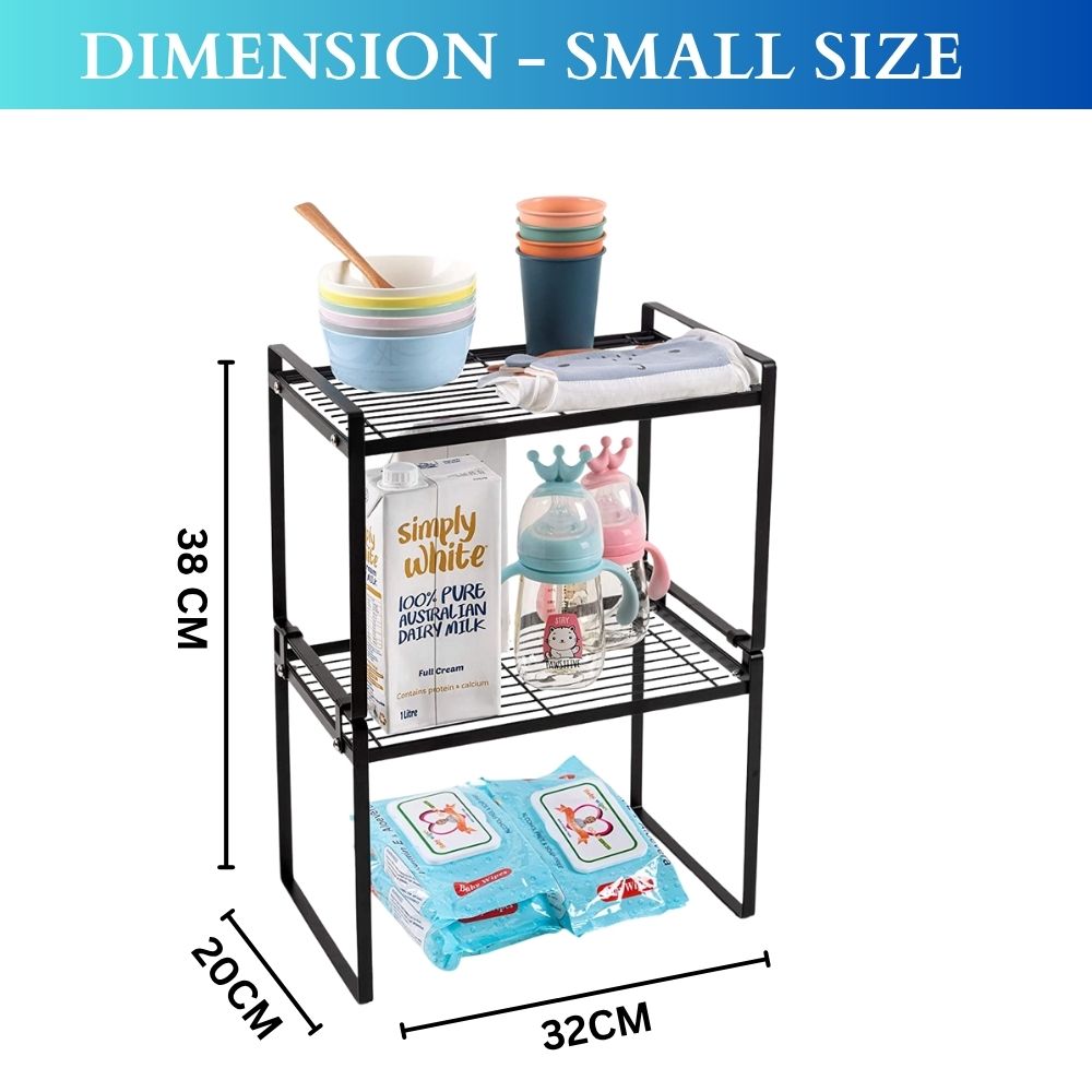 2 LAYER KITCHEN COUNTER RACK – METAL STORAGE SHELF, PANTRY ORGANIZER, COUNTERTOP SPICE RACK, MULTIPURPOSE KITCHEN SHELF, undercabinet rack