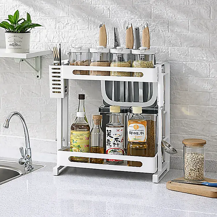 • Material: 2 layer kitchen organizer rack.