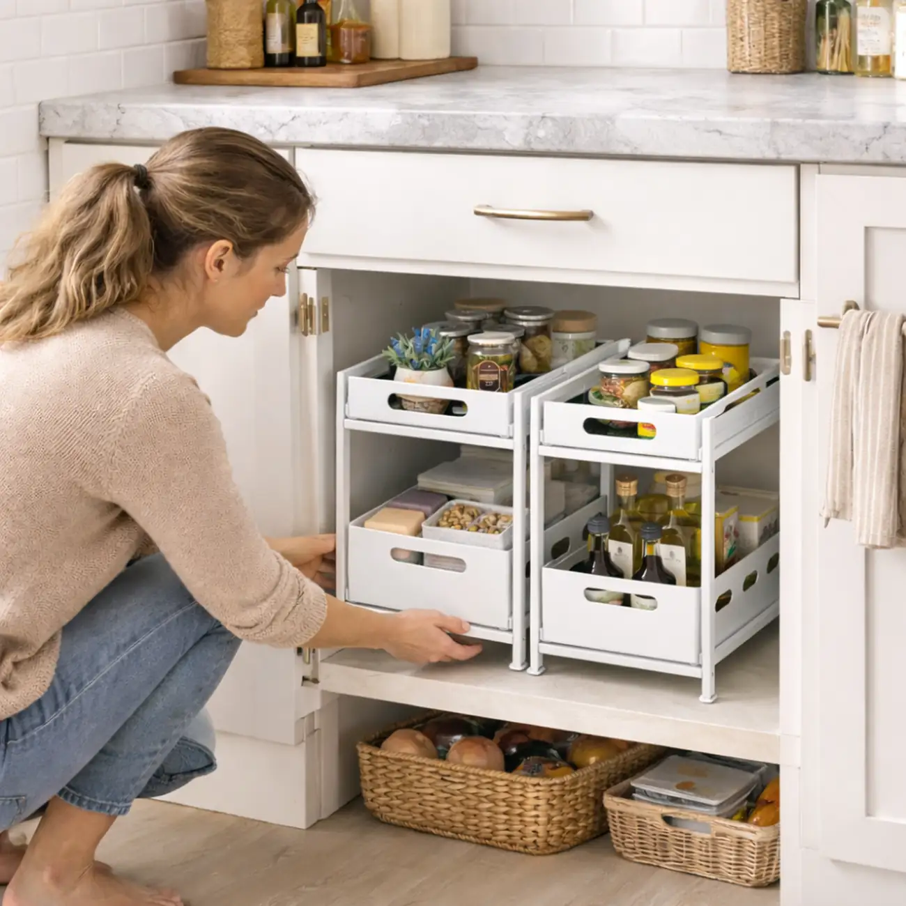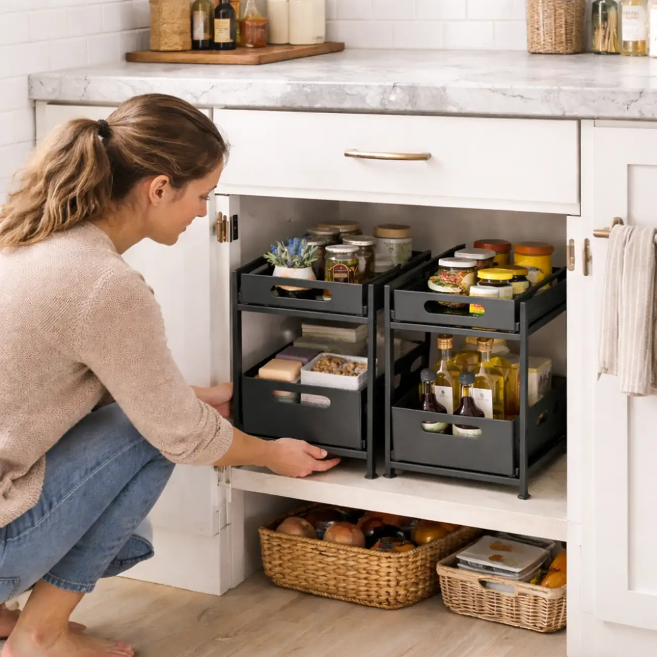 ✅ Instant Organization – Turn messy under-sink spaces into neat, layered storage