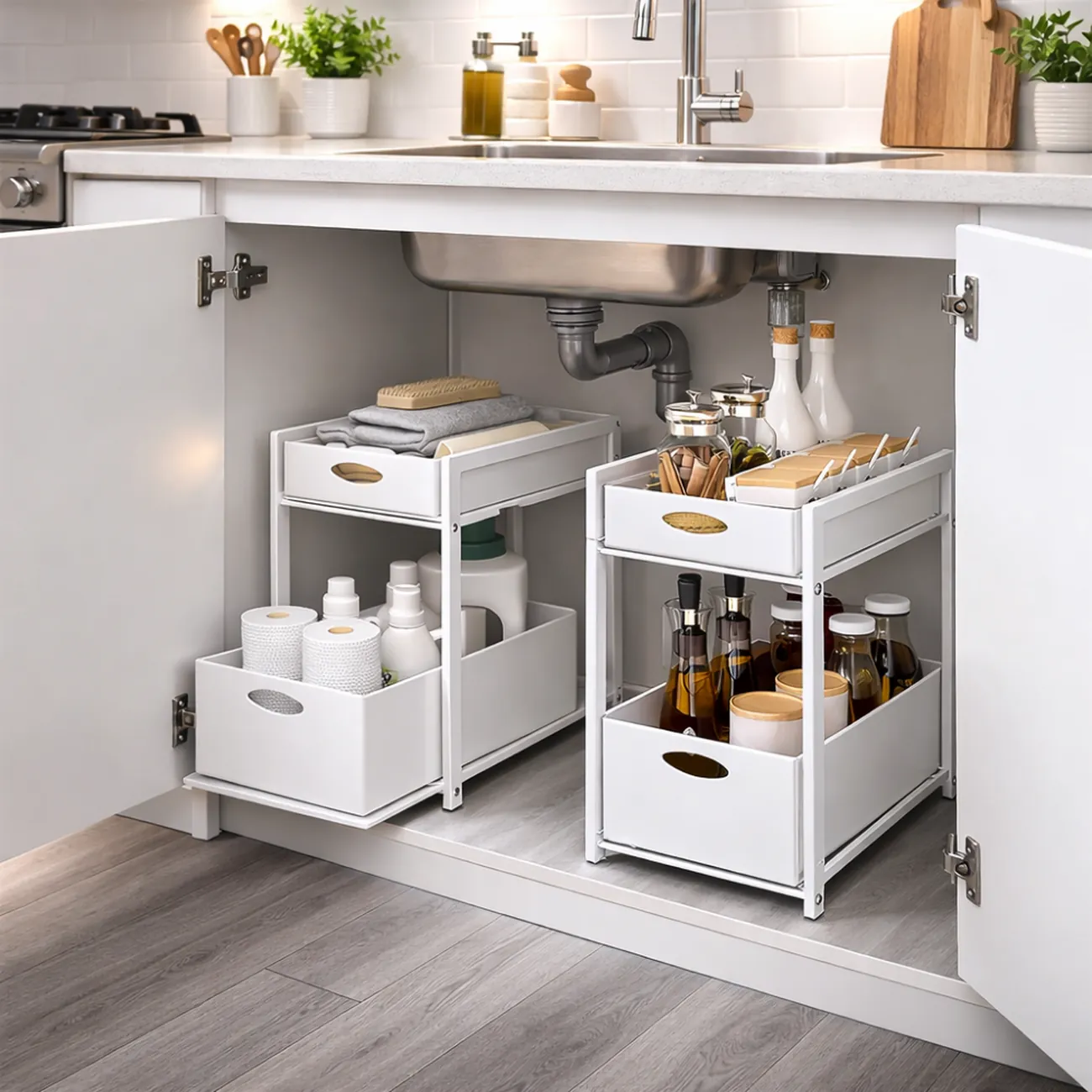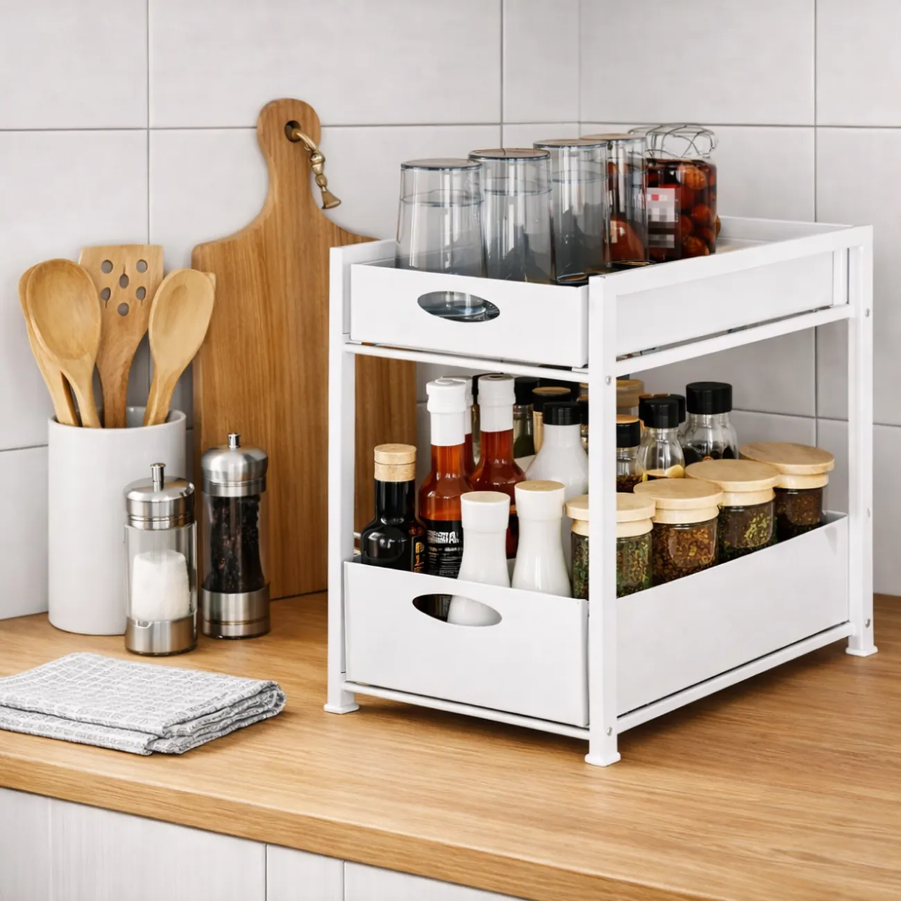 Tired of digging through messy cabinets? Struggling to reach cleaning supplies or spice jars hidden at the back? The 2 Layer Pull Out Rack is the perfect solution to transform cluttered kitchen and bathroom cabinets into clean, organized, easy-access storage.