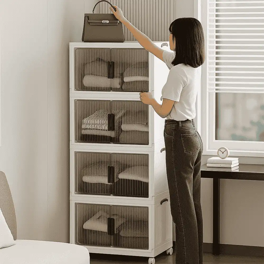 Four Tier Bliss: Unleash the power of vertical storage with four spacious tiers, providing ample room for all your essentials. From clothing and accessories to household items, this storage box is your go to solution for tidying up any room.