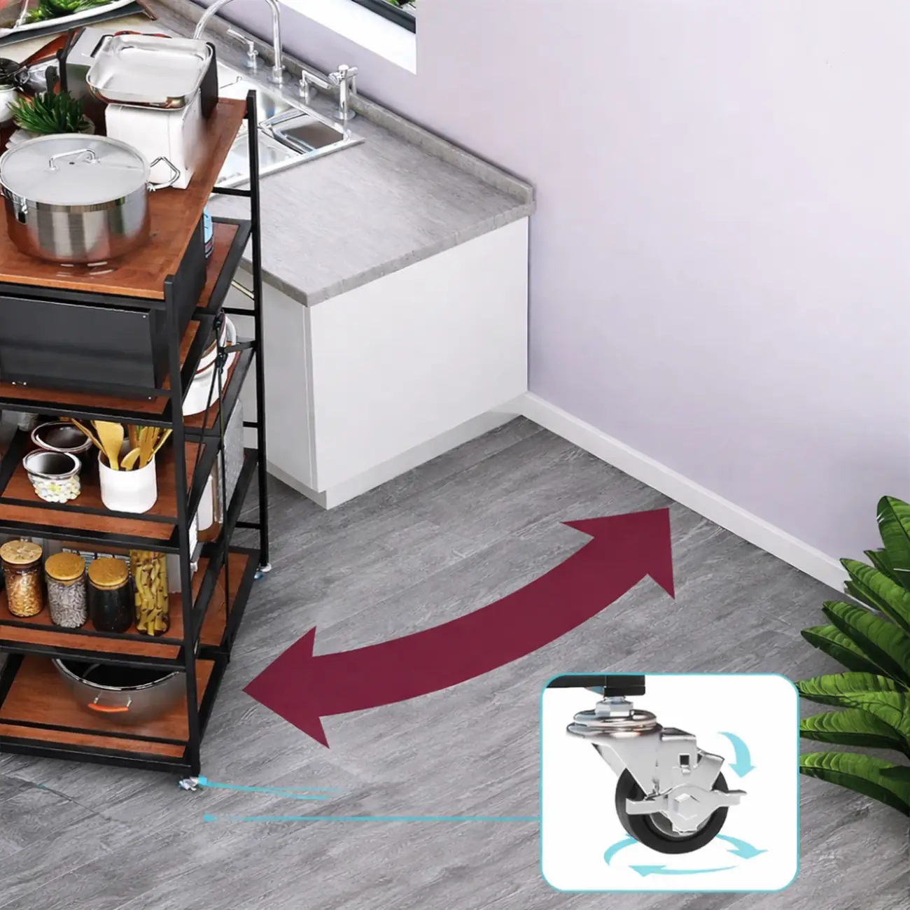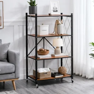 STEEL FOLDABLE RACK WITH WOODEN SHELF – 4 TIER STORAGE RACK WITH WHEELS