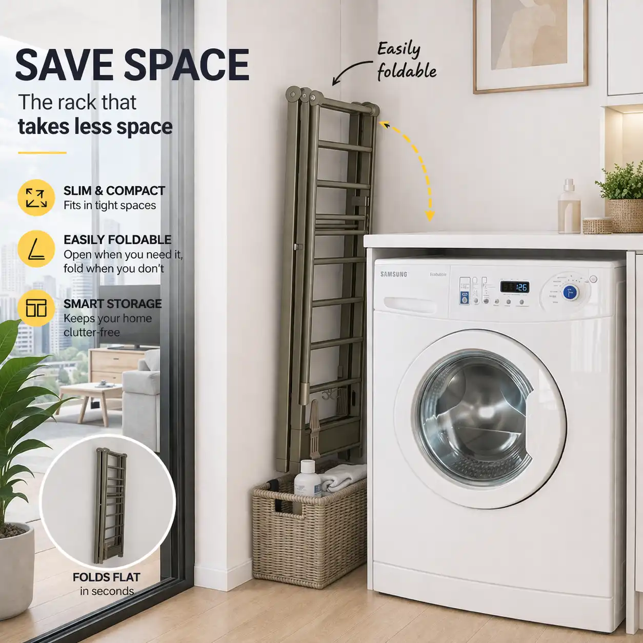 Designed for busy households, apartments and modern living. This premium drying rack gives you maximum drying space without taking over your home. Whether it’s a rainy day or a sunny balcony setup, our rack adapts effortlessly to your lifestyle.