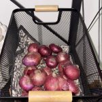 The open mesh design allows for airflow and easy visibility, ensuring quick access to your stored items. Whether you need a kitchen organizer for fruits and vegetables, a pantry storage solution, or a bathroom organizer for toiletries, this black metal storage basket is a versatile addition to any space.