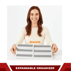 - Expandable Design – Adjust the width to fit narrow or wide spaces perfectly. Great for kitchen cabinets, countertops, drawers, and open shelving.
