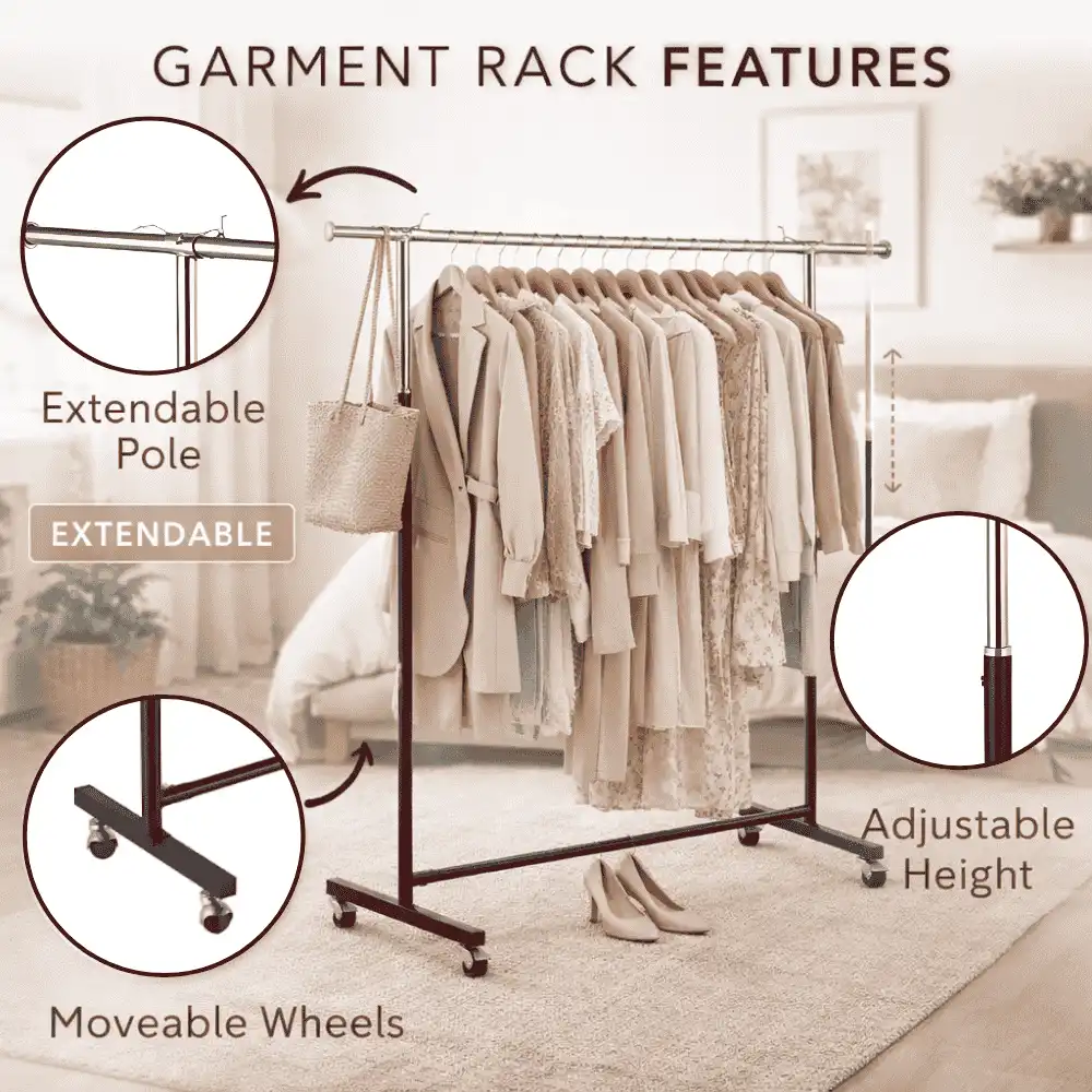 If you are looking for a heavy duty cloth hanging rack, extendable garment stand, or commercial clothes stand, this product is the perfect choice.