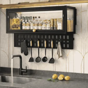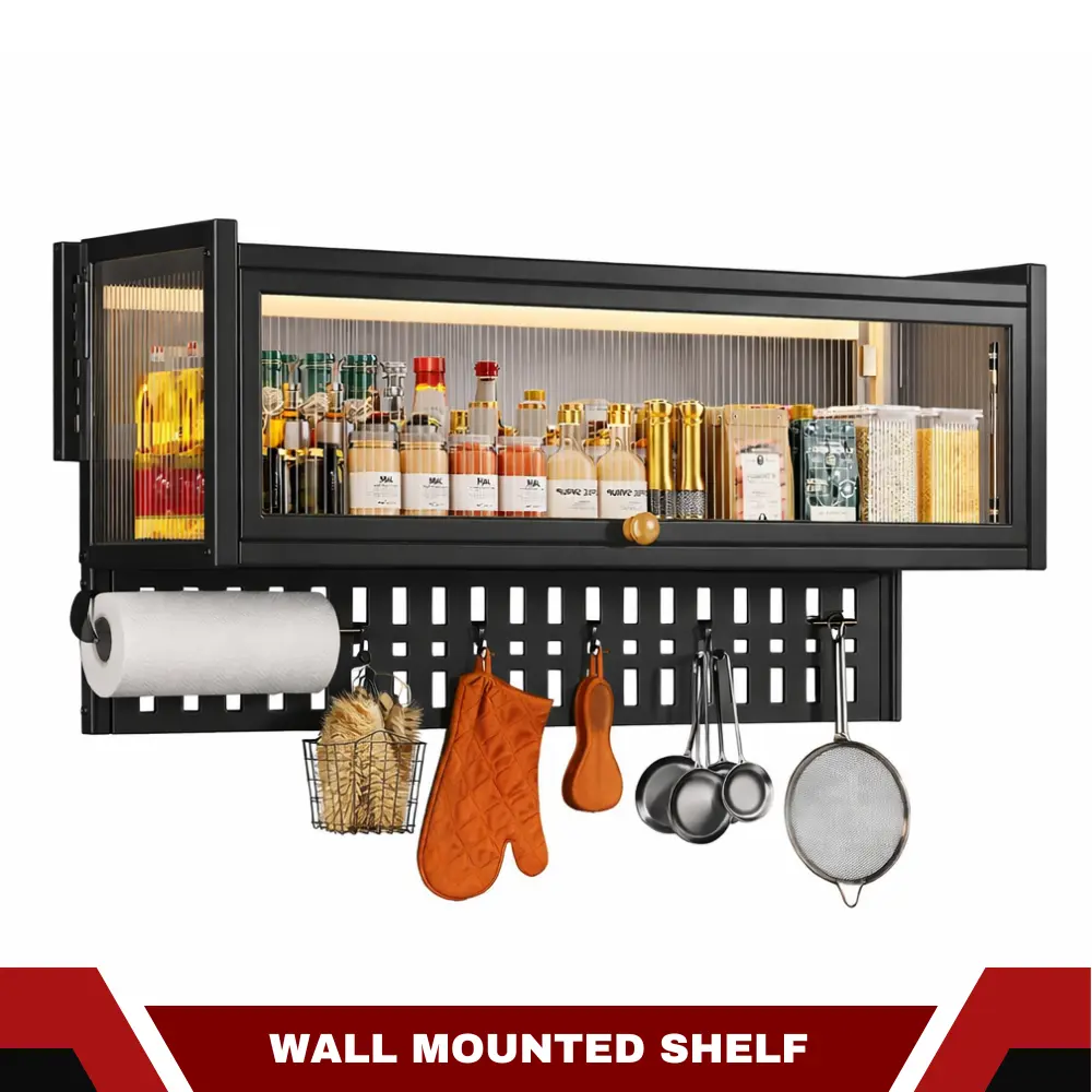 Upgrade your home organization with this Kitchen Wall Cabinet Storage Cabinet. It is a premium wall mounted storage cabinet designed to maximize space while enhancing modern interiors. This wall mounted kitchen cabinet is manufactured using high-quality carbon steel, finished with a durable black and white powder coated surface, ensuring long-term strength, rust resistance and everyday durability.
