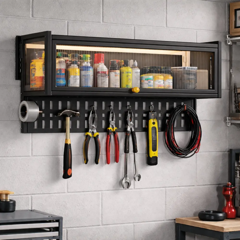 - Wall Mounted Storage Cabinet with integrated hanging board