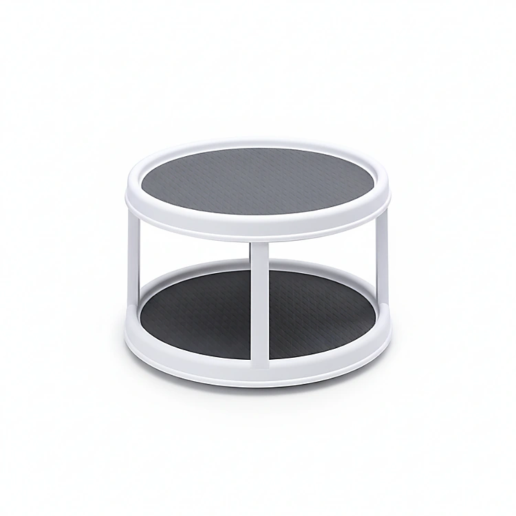 The Lazy Susan Rotatable Storage Rack is a practical kitchen organizer designed to keep spices, sauces and small kitchen items neatly arranged and easy to access. With its doublelayer circular structure. This rotating rack provides convenient storage while helping you