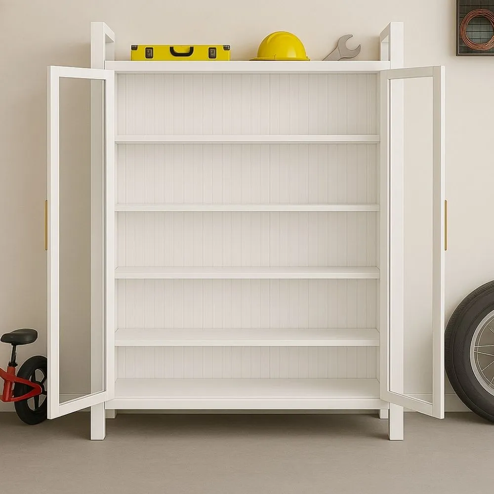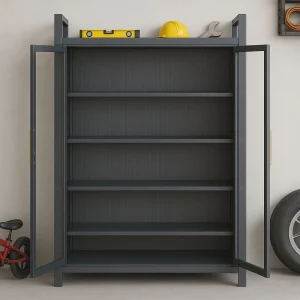 Metal Storage Cabinet with Clear Doors – Carbon Steel Kitchen & Display Rack – 5 Layer Shelf