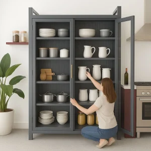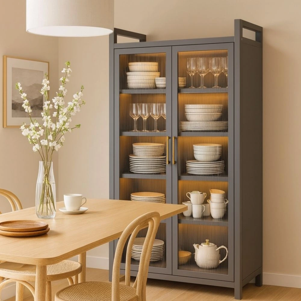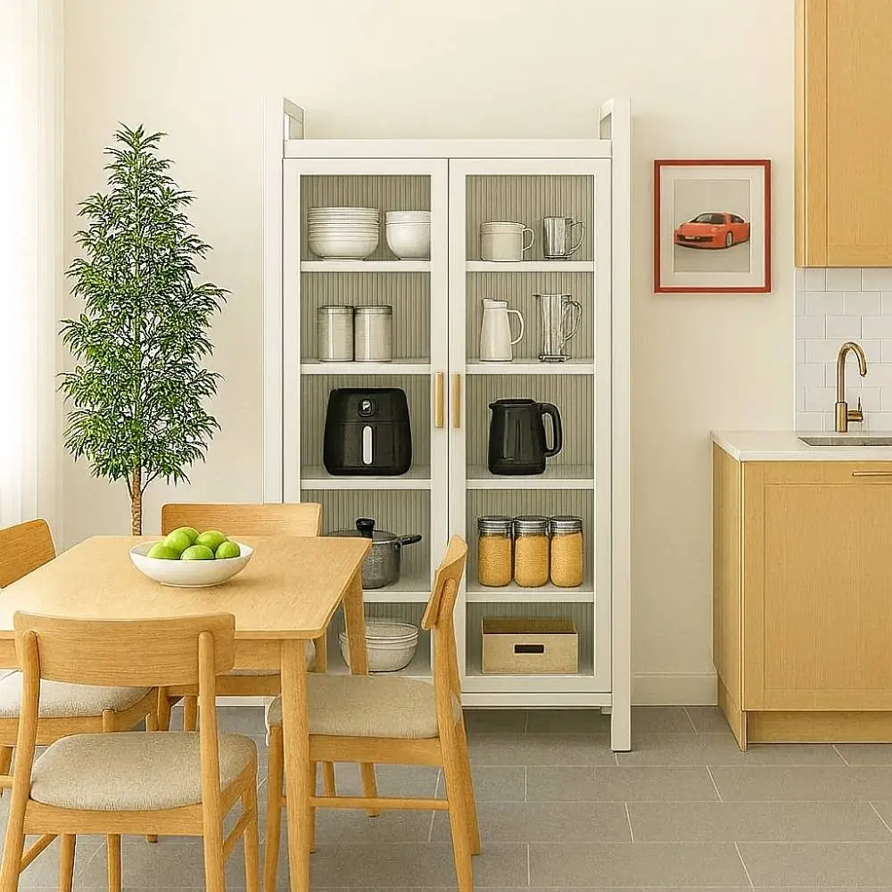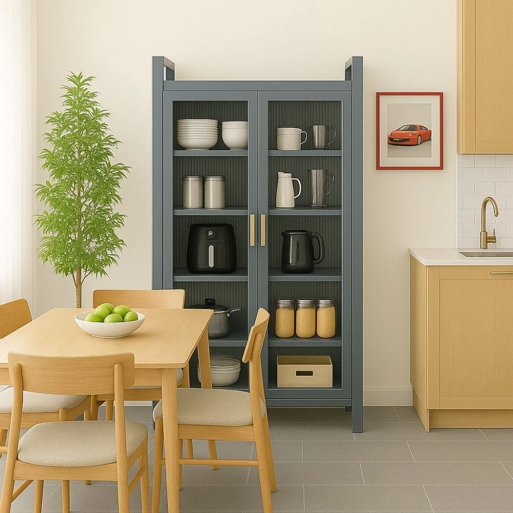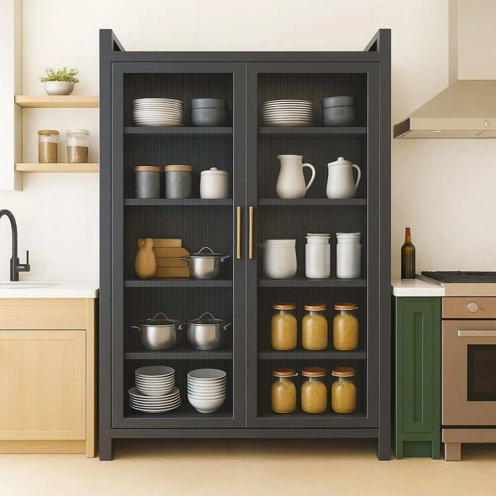 Whether you use it as a kitchen storage rack, bookshelf, pantry organizer or display unit, this double-door cabinet adds both functionality and style. The adjustable shelves allow you to customize the interior to fit appliances, books, tableware, containers or décor items. With its 80 cm length, 40 cm width, and 180 cm height, it fits perfectly into compact spaces while providing large vertical storage.