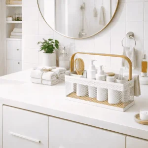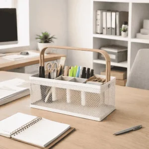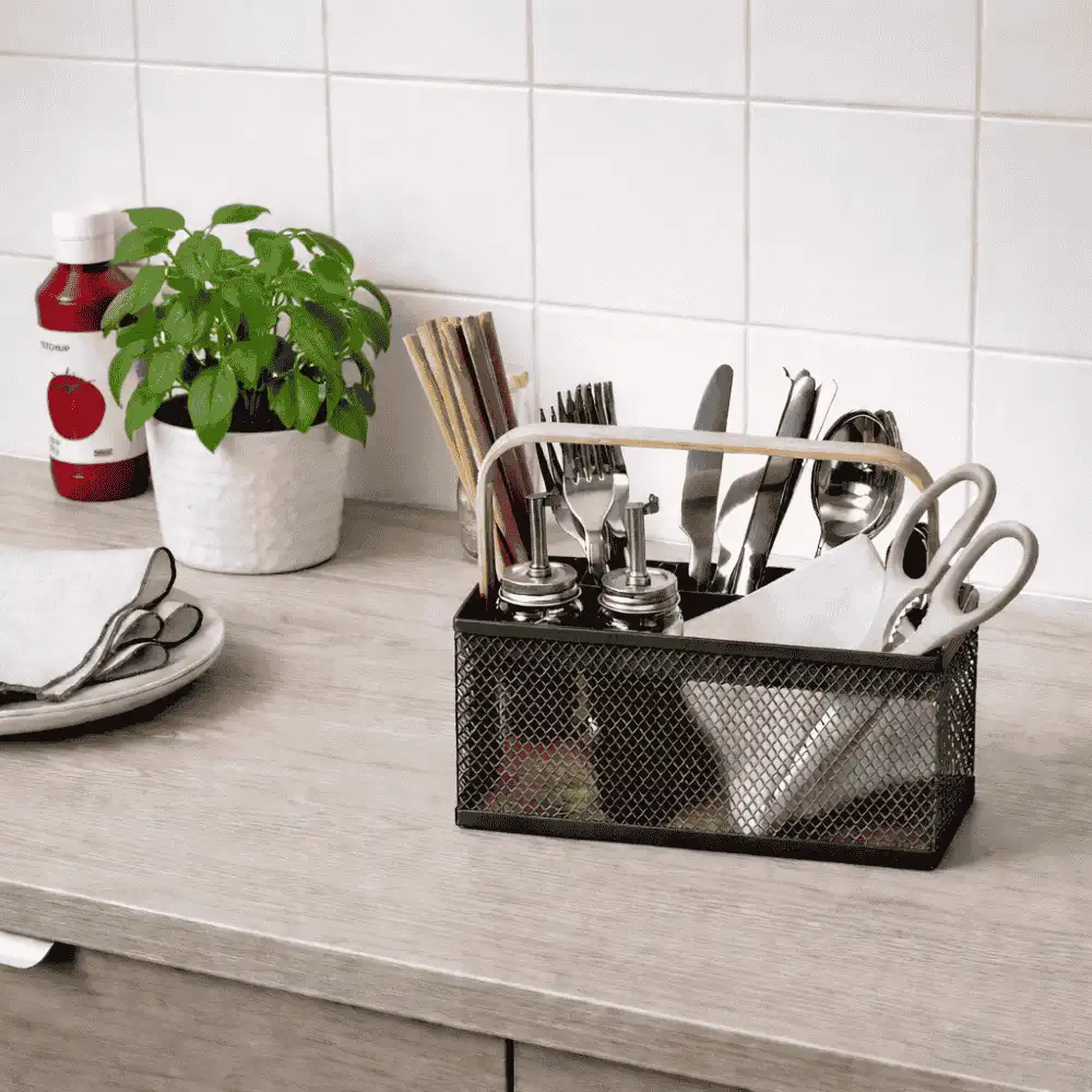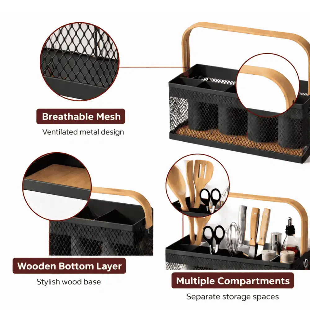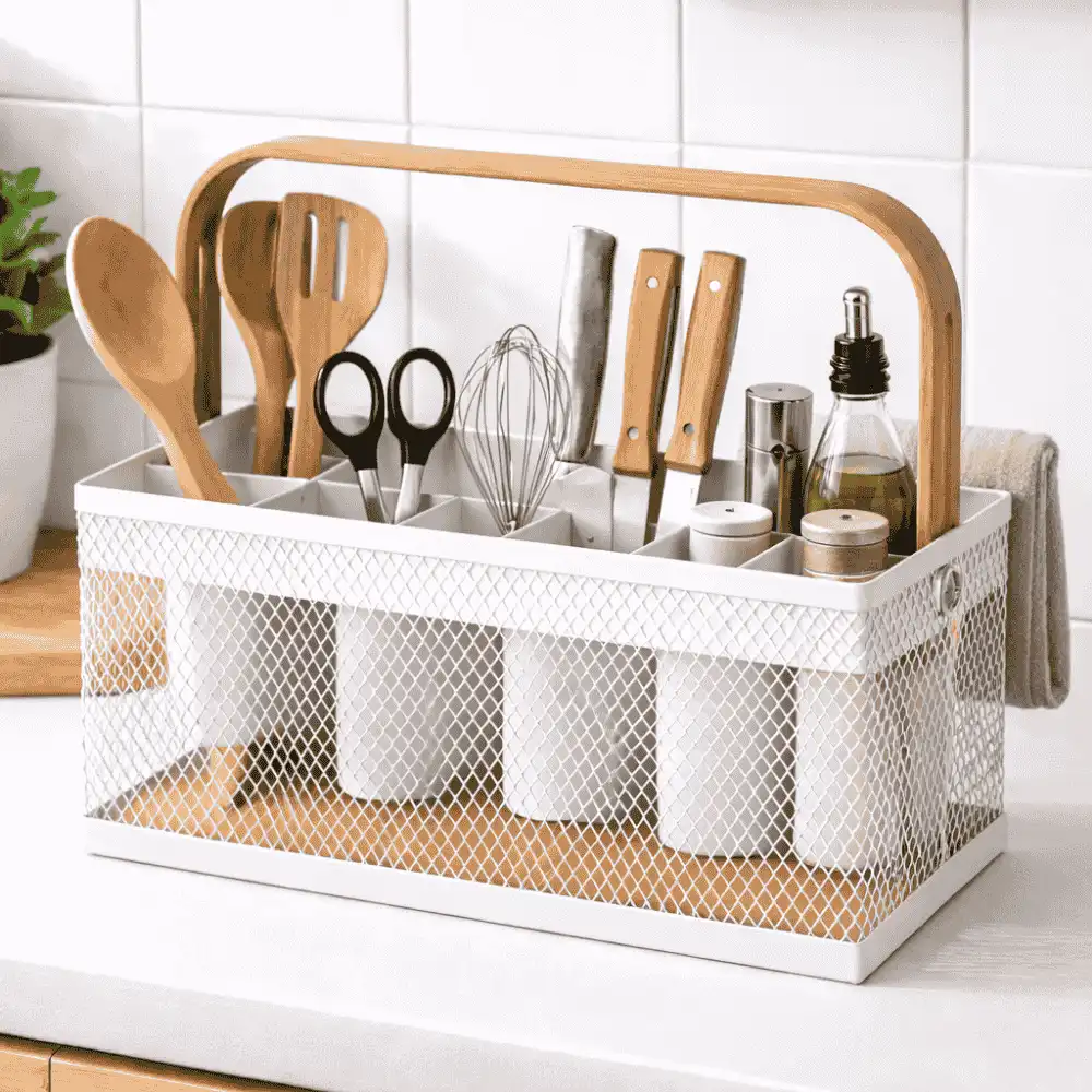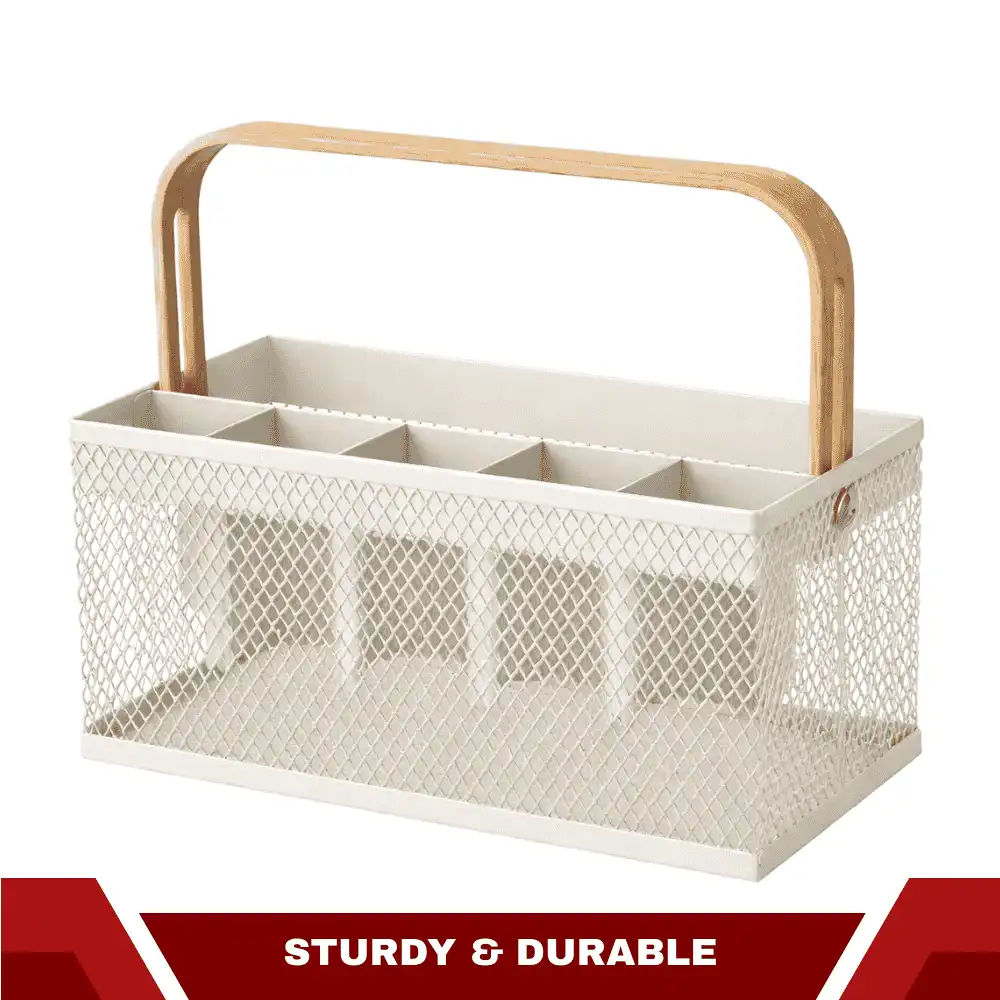 Whether you need a kitchen cutlery organizer, a bathroom countertop basket, a vanity organizer box, or a stationery holder organizer, this multi-use basket is the perfect solution.