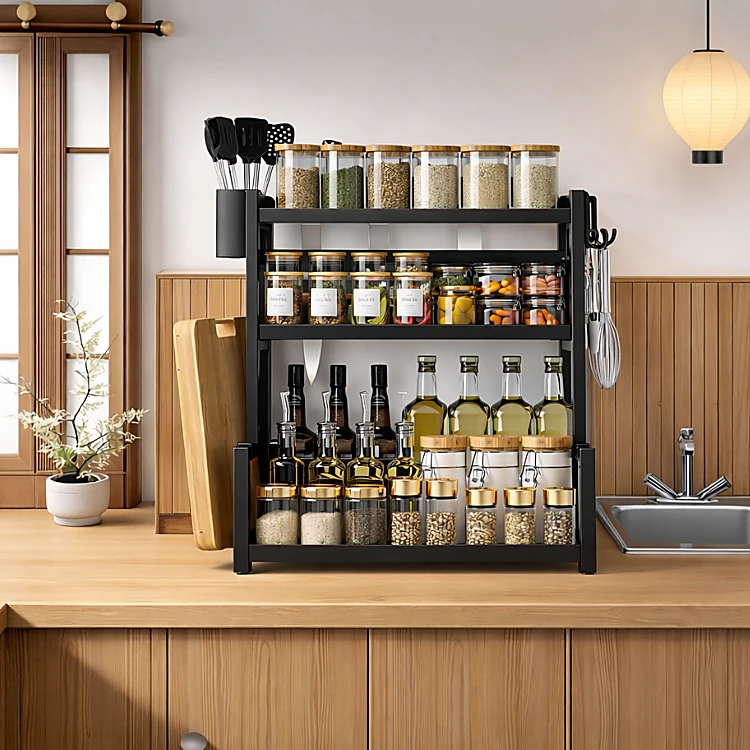 layout provides generous space to neatly store spice jars, oil bottles, condiments and other cooking essentials, helping keep your kitchen countertop organized.