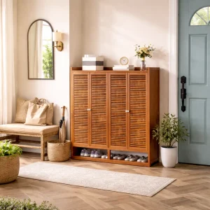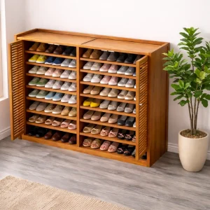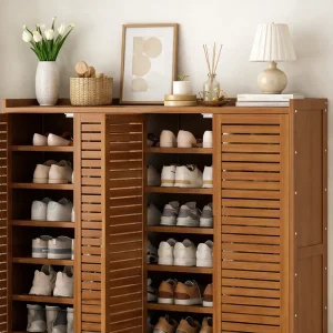 Be the first to review “4 DOOR SHOE CABINET | 9 SHELF BAMBO0 WOODEN STORAGE CUPBOARD” Cancel reply