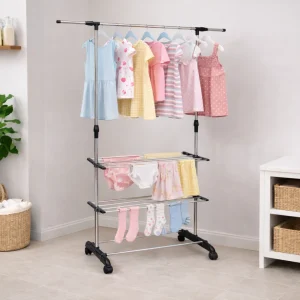 With adjustable height poles and smooth rotatable wheels, you can customize storage to your needs and move it effortlessly around your home. Whether you’re organizing daily outfits or maximizing small spaces, this clothes hanging stand delivers premium quality and smart storage in one solution.