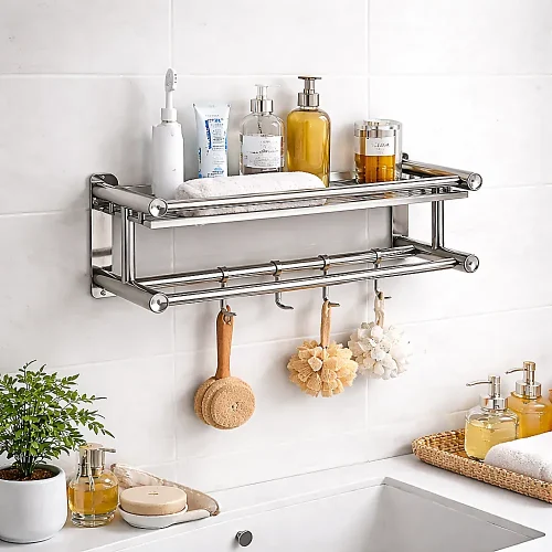 5,950.00 LKRSUS 201 STAINLESS STEEL 2 LAYER RACK, BATHROOM STORAGE RACK, WALL MOUNTED BATHROOM RACK