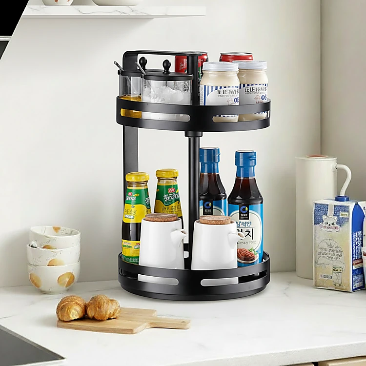 8,450.00 LKRROTATABLE KITCHEN SPICE RACK, MULTIFUNCTION 2 LAYER ROUND SHAPED STORAGE RACK, BLACK COLOUR